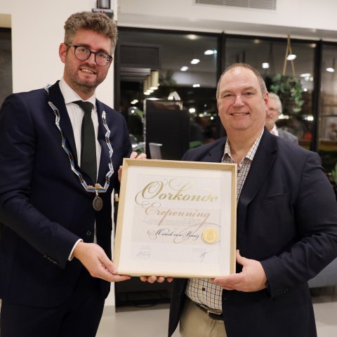 Tijdens hun feestelijke afscheid zijn Marcel van Raaij en Gert Rikhof onderscheiden met de gemeentelijke erepenning. De uitreiking werd verricht door locoburgemeester Martijn Kroonen.